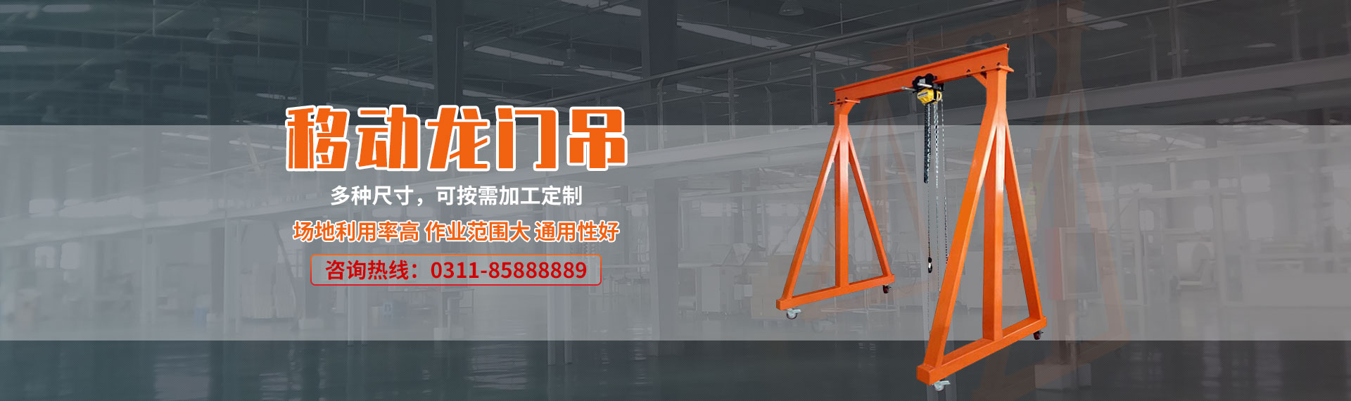 成華牌龍門吊架在工業(yè)生產車間更具靈活機動、適應性廣等特點,在工業(yè)裝備的搬運挪移中是高效自動生產線上必備的單獨應急吊裝設備,有了它能確保生產線暢通無阻。
